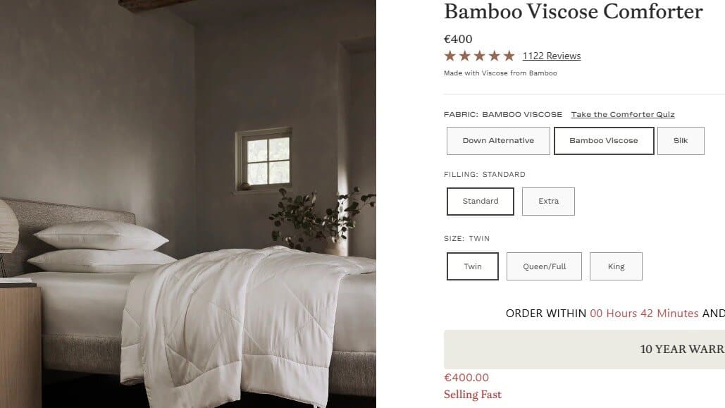 Prices start at $328.00 (Twin Bamboo Viscose) and $448.00 (Twin Silk), making this one of the pricier ones on the list, but keep your eyes peeled for sales, like the 30% off special they have at the time of writing.