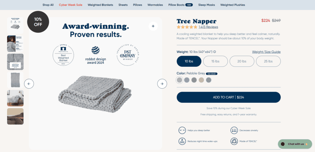 For example, there’s the Bearaby Cooling Weighted Blanket, called the Tree Napper, made from organic TENCEL.