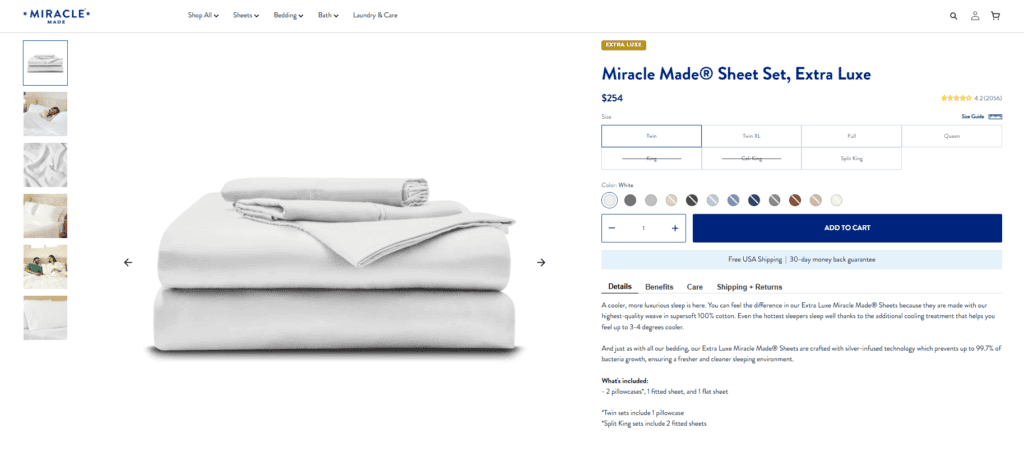 There’s also an impressive selection of sizes and colors. You can get them in Twin, Twin XL, Full, Queen, King, Cali King, and Split King. Colors include Pearl White, Champagne, Lilac, Mint Green, Charming Pink, Charcoal, Grey, Black, Light Blue, and Blue Grey.
