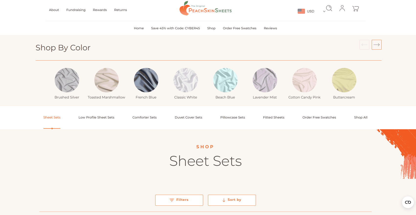 Peach Skin Sheets are soft, breathable, lightweight, and designed to be moisture-wicking and dry quickly. The fitted sheets have deep pockets and thick elastic to keep them in place.