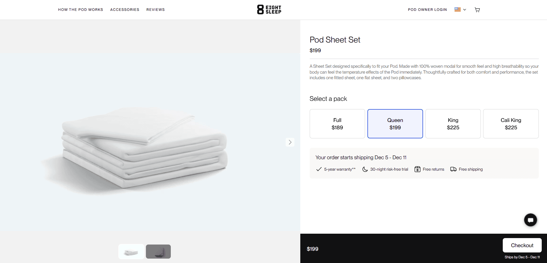Topping it off with the 100% woven modal sheet set ensures you’ll feel the temperature changes, just as you’re meant to. It’s not necessary for the Pod to work, but if you’re going all-in, it’s worth a thought.