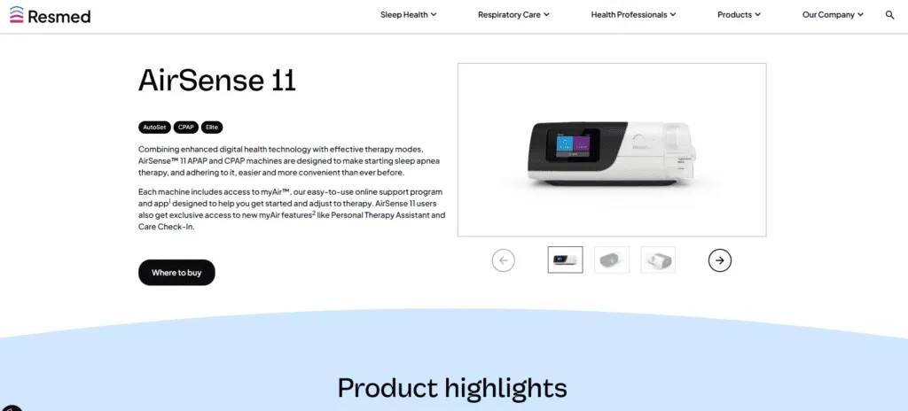 There are some great products competing for top pick in this area, but I’ve gone with the ResMed AirSense 11 AutoSet. It blends user-friendly design with cutting-edge features, including: