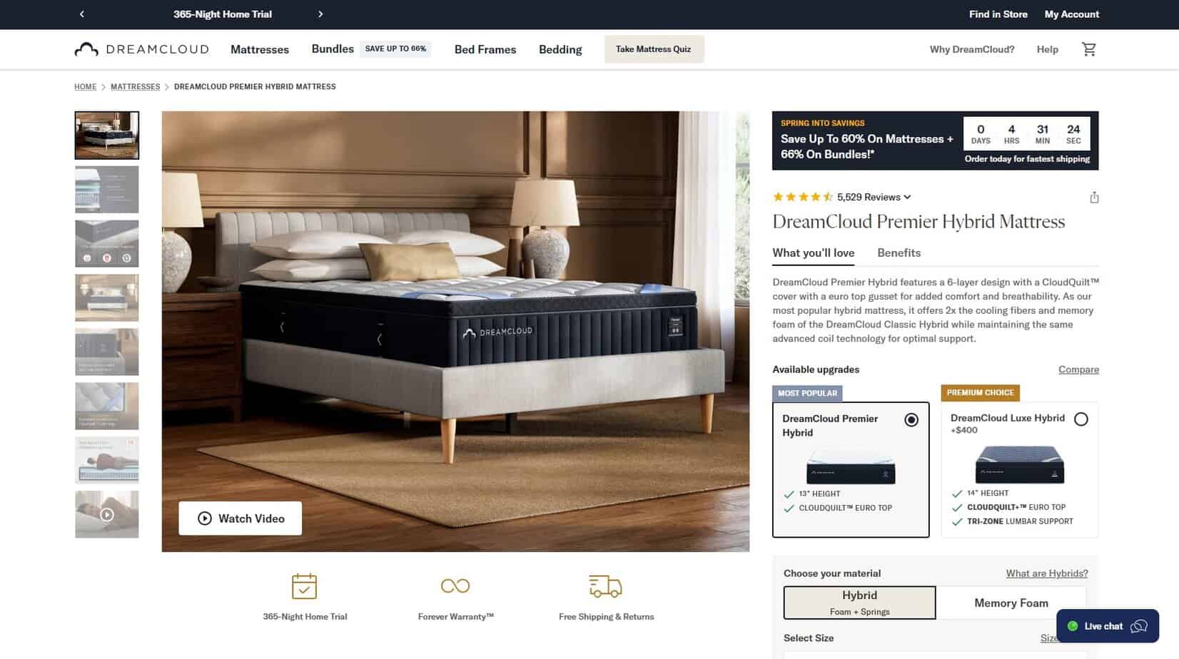 The DreamCloud Premier Hybrid is where people land if they want something more affordable (without losing that hybrid feel).