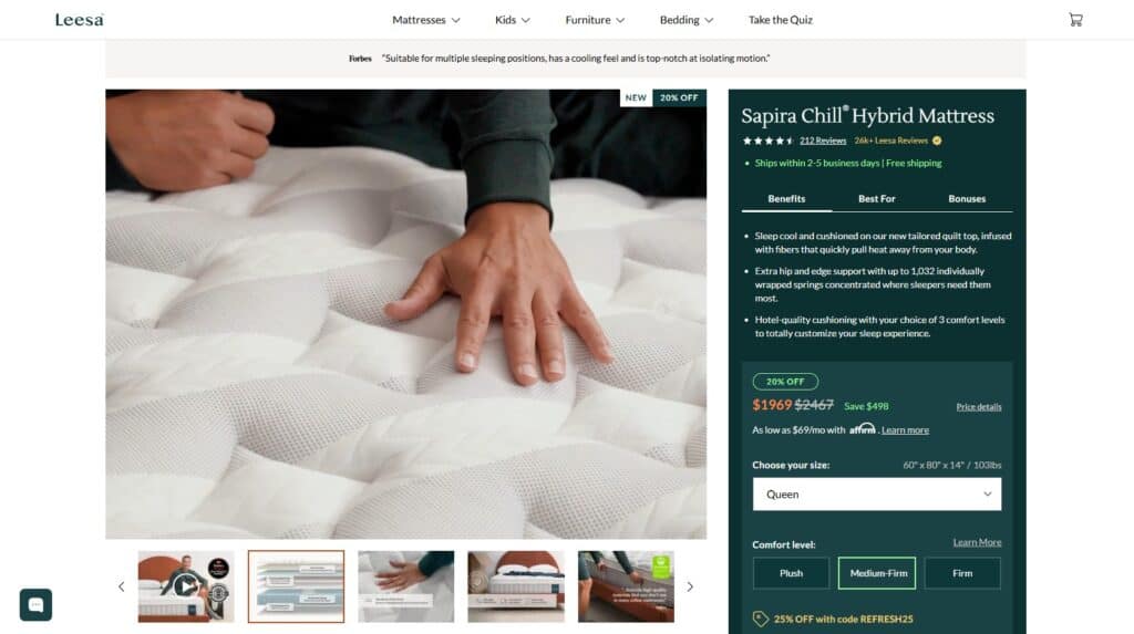 Leesa Sapira Chill Hybrid – Best Cooling Hybrid Mattress
