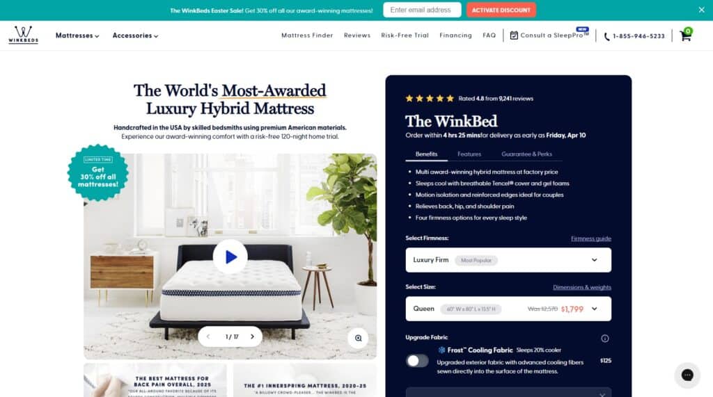 WinkBedFirm supportBreathableModerateBack and stomach sleepers