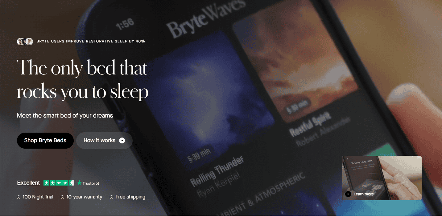 Best for: This is ideal for more of a luxury boutique feel, a buyer specifically looking for a smart bed system that can support pain management. If you aren’t worried about high-tech cooling infrastructure or vibrations to wake you up instead of your alarm and instead you just want something that focuses on pressure, consider Bryte.