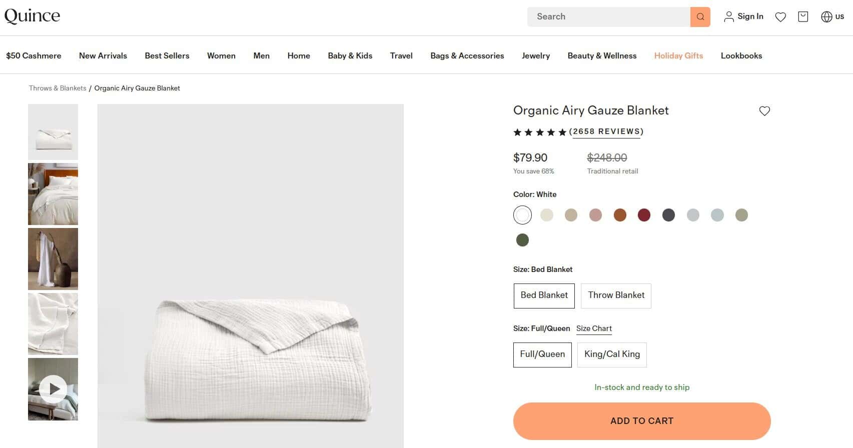 Best Sustainable: Quince Organic Airy Gauze Blanket