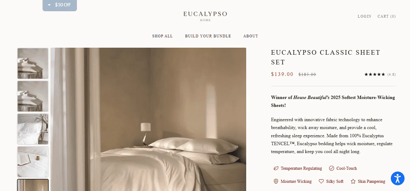If cooling is your top priority, eucalyptus lyocell sheets are worth a serious look. Lyocell (sometimes branded as Tencel) is made from sustainably sourced wood pulp, usually eucalyptus, and it has a smooth, silky texture that feels cool to the touch.
