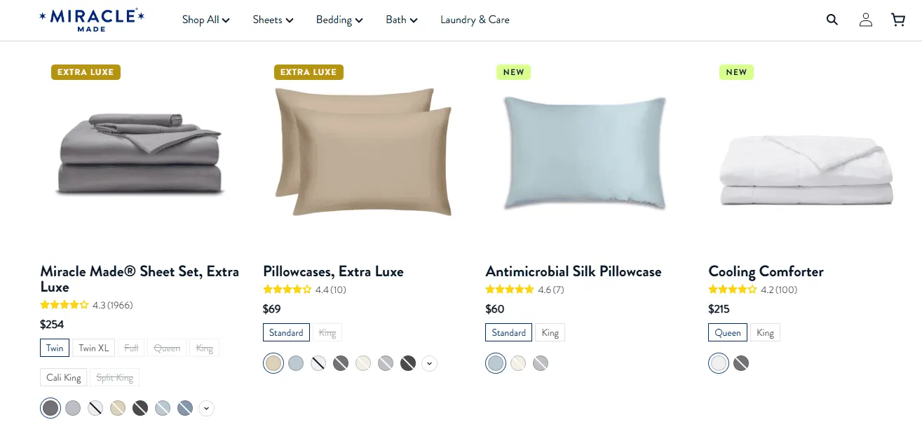 Miracle Brand is also going to beat Norwex when it comes to price and options in size and color. Norwex only currently offers their sheets in a Queen size and in one color (though strangely enough, the pillowcases are only offered in King). Altogether, fitted sheet, flat sheet, and set of pillowcases from Norwex cost around $290. A Queen Extra Lux sheet set from Miracle Brand comes to just under $275, and they have up to 12 different color options on their website.