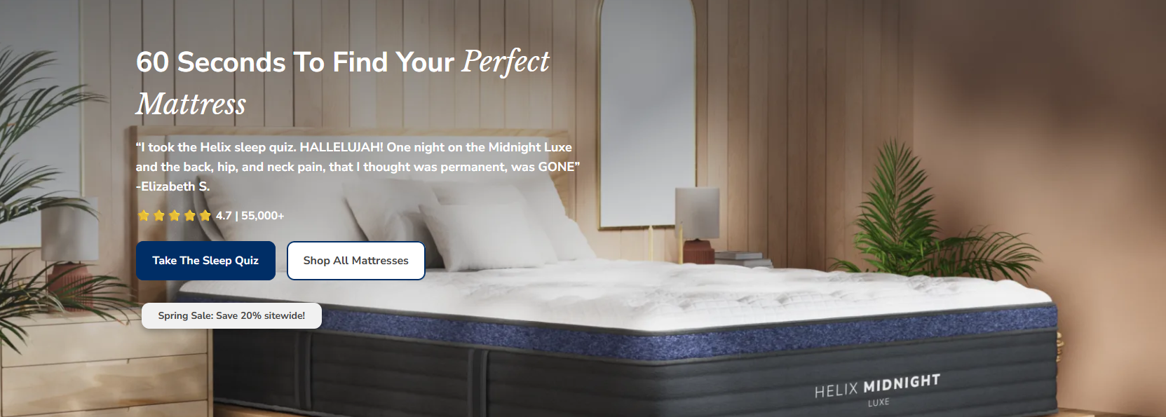 When first clicking on the Helix website, they mention a 60-second quiz to find the perfect mattress.