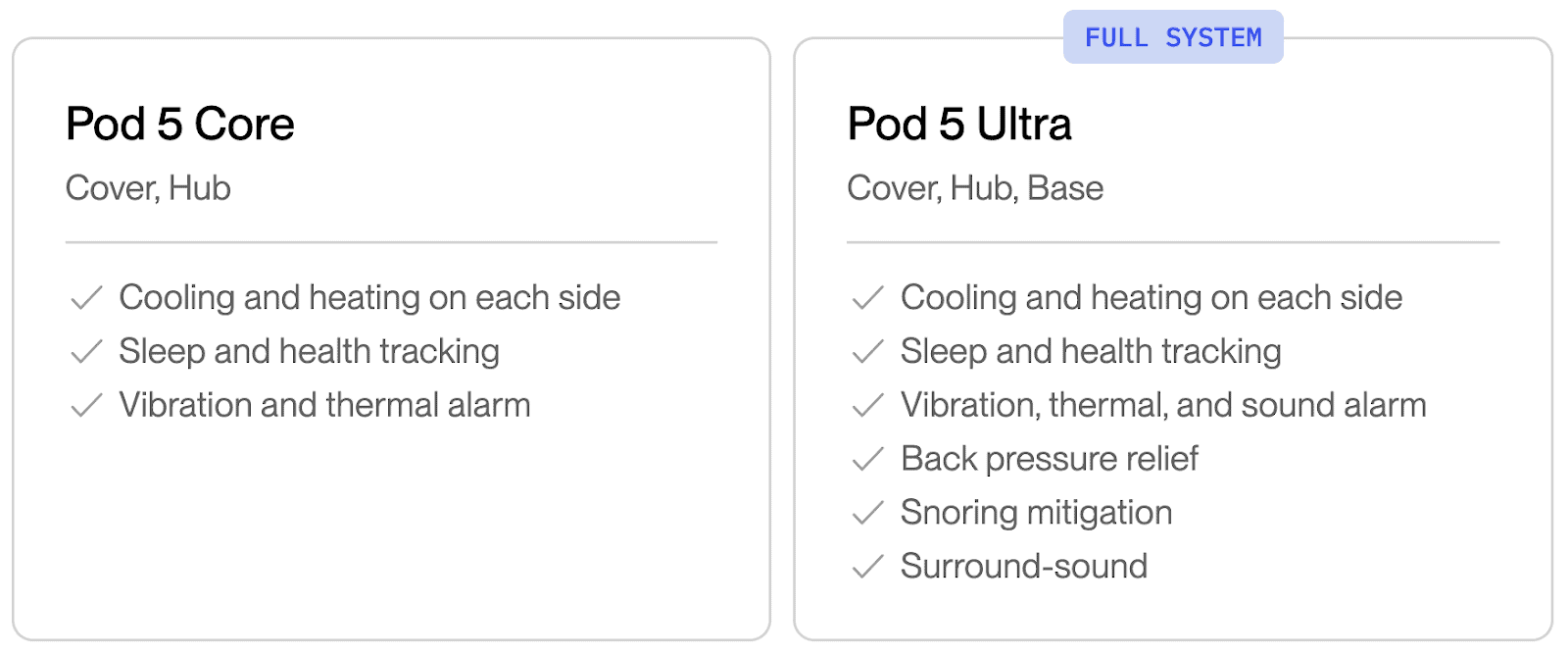 Both the Pod 5 Core and Pod 5 Ultra use clinical-grade sensors and the newest generation tech to gather biometric data, so the automations are tuned perfectly to your body, and to your partner’s if you have a dual-zone setup.