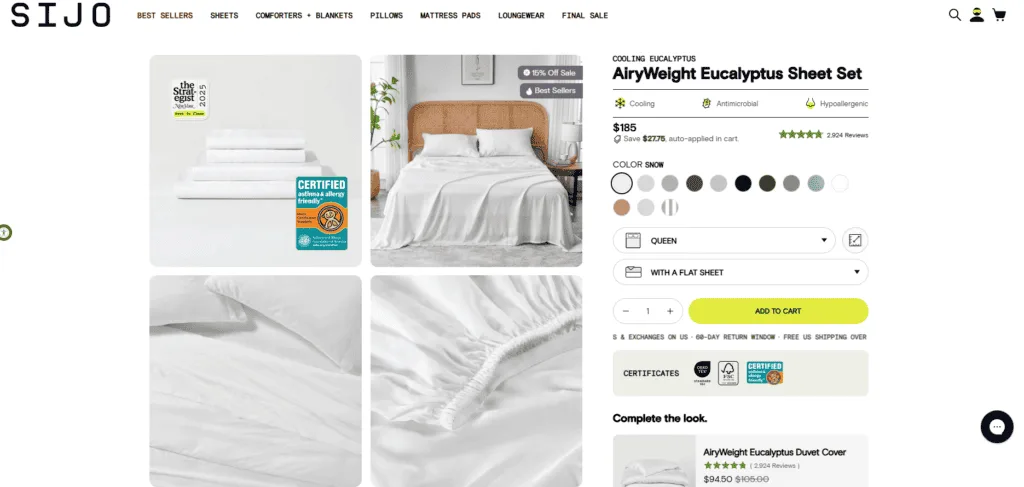 5. Sijo AiryWeight Eucalyptus Sheets – Best cooling
