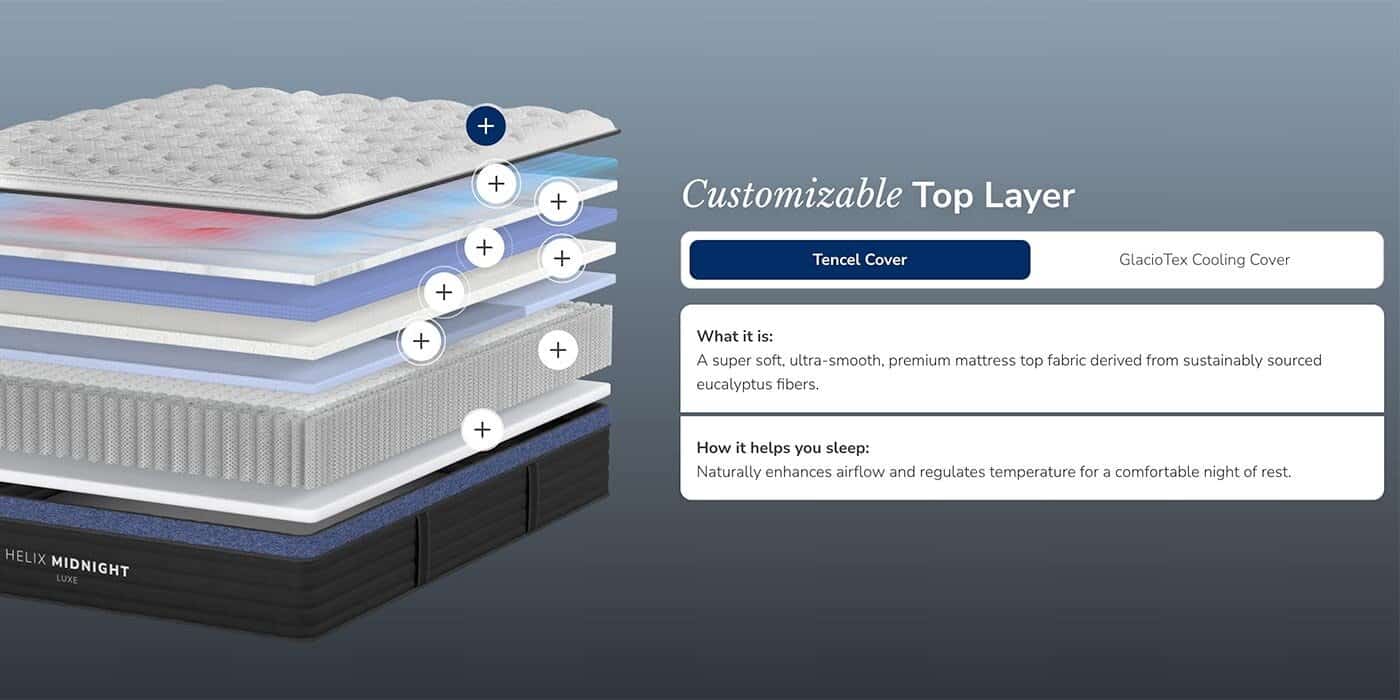 - Includes a standard Tencel cover that’s smooth and breathable, but optional upgrades are available, together or separately. The GlacioTex cooling cover draws heat away from the surface of the mattress; the CoolForce layer pulls heat away from your body; the ErgoAlign layer is designed for lower back pain relief.