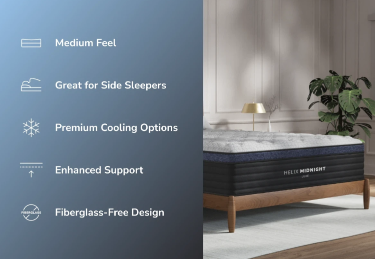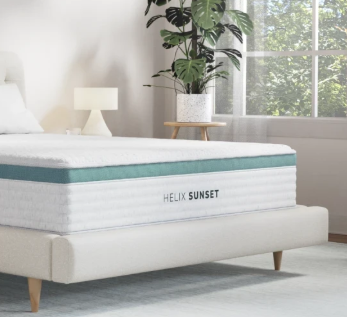 These two mattress brands take two different material approaches. Helix has a hybrid design with zoned coil support and a more lifted feel. It’s the kind of mattress where it feels like you’re sleeping on it.