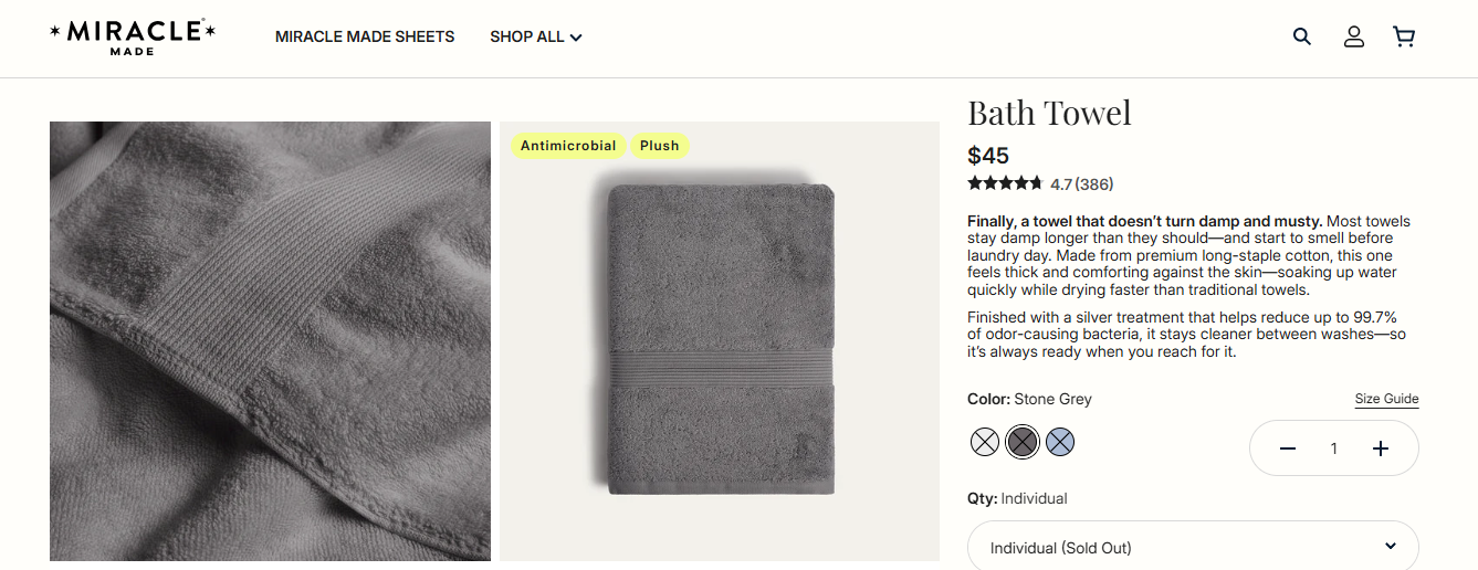 Navigating the Miracle Made website is fairly simple and straightforward. The layout feels very clean and minimal, which made it easy for me to focus on the actual products without feeling overwhelmed. Everything is organized into clear categories like bedding and bath, so I was able to go straight to the towel section without clicking through a bunch of unrelated pages.