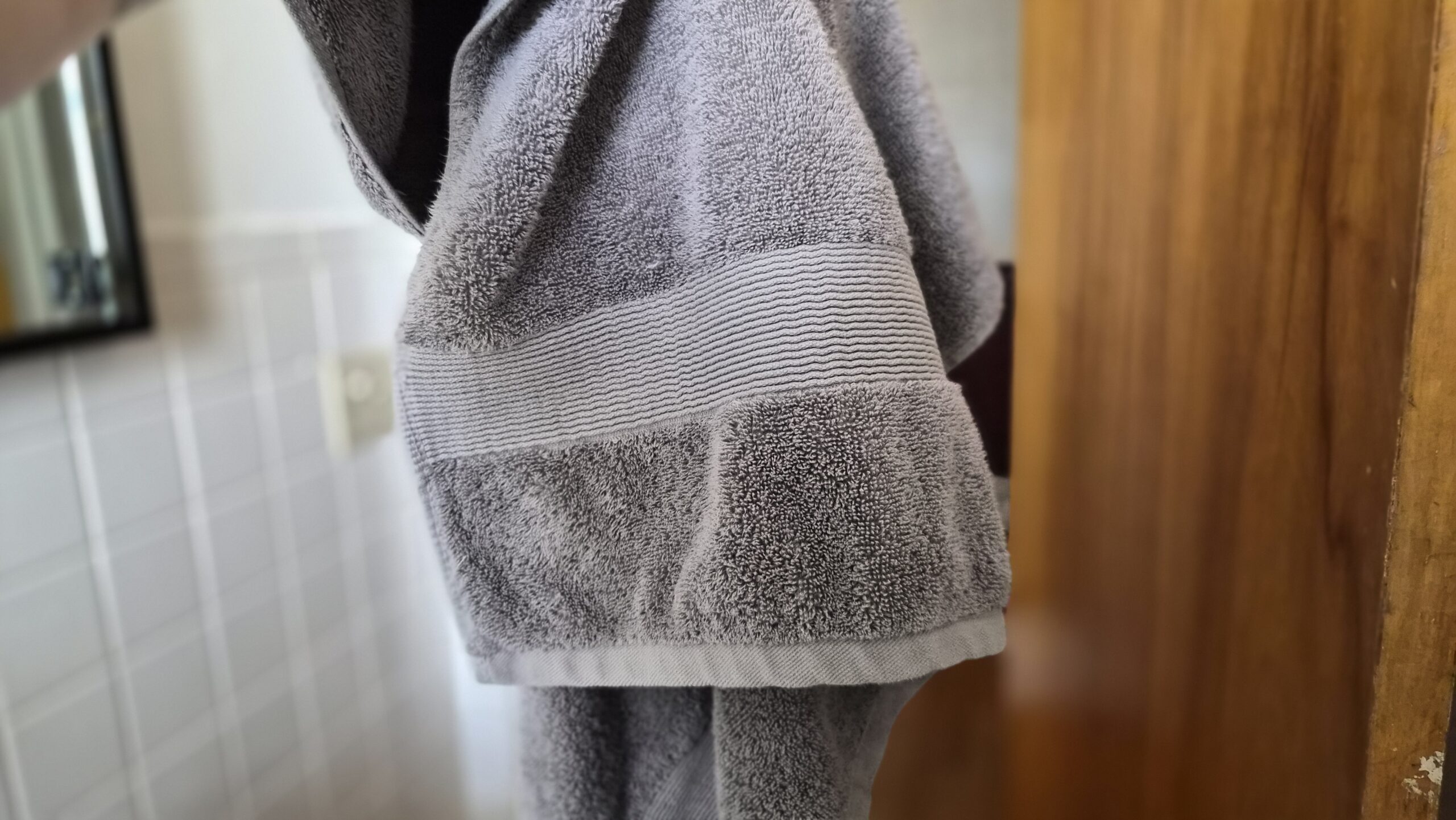 When hung on a bar with better airflow, it dried noticeably faster and felt ready to use again by the next shower. This is where the construction really stands out. The towel manages to feel thick and soft without holding on to excess moisture.