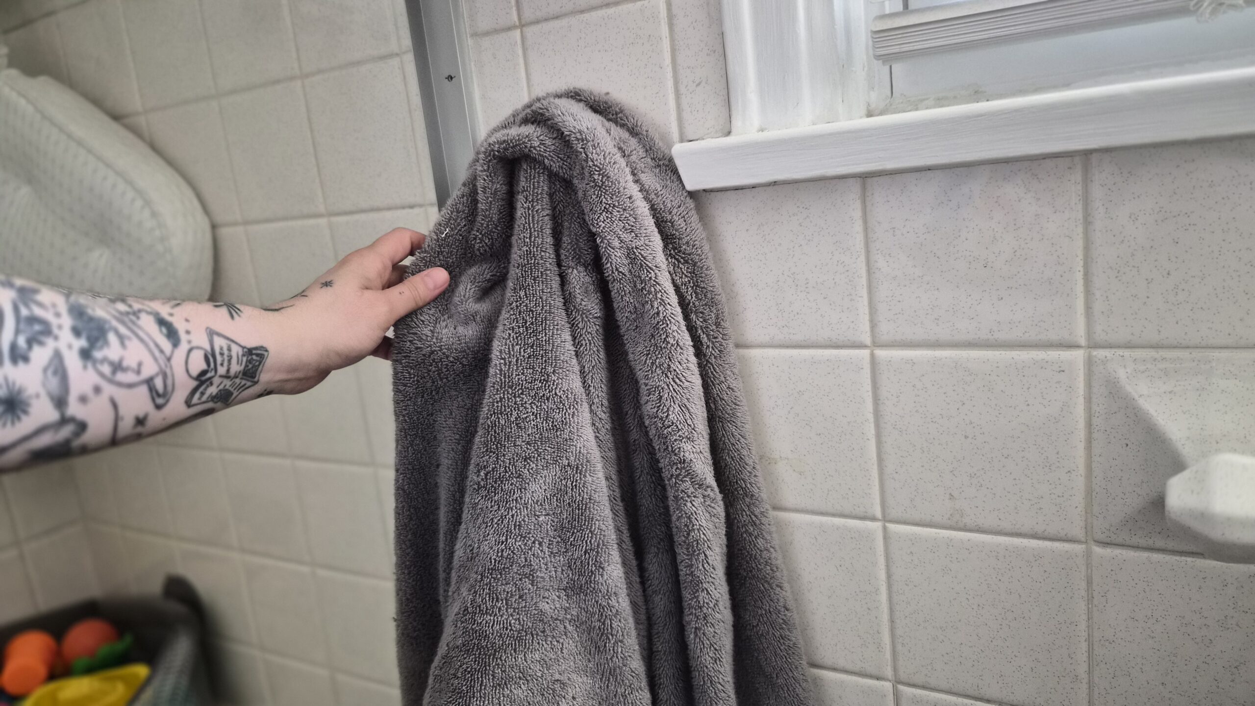 To get a realistic sense of this, I paid attention to how the Miracle towel behaved throughout the day. After a morning shower, I hung it on both a hook and a towel bar on different days to see if placement made a difference.