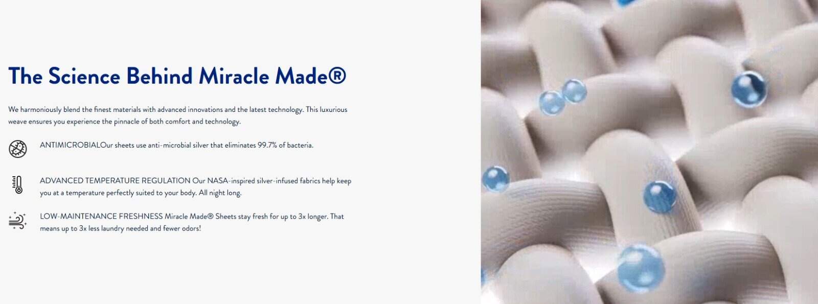 Miracle Made promotes its success in reducing bacteria growth, claiming up to a 99.7% reduction. They also weave the silver directly into the fibers, not just as a surface coating. This should result in antimicrobial effectiveness even after repeated washes of the sheets.
