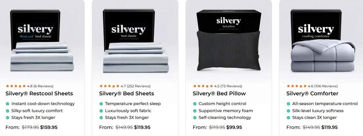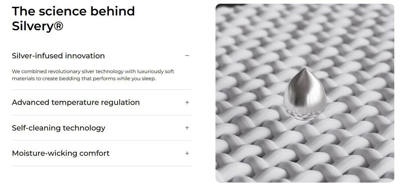 Silvery, on the other hand, seems more concerned with lifestyle and wellness features. They emphasize benefits for skin and hair, dermatologist recommendations, and a softer spa-like sleep aesthetic. Consumers seeking a bed that feels like part of their broader self-care routine could be drawn to these features.