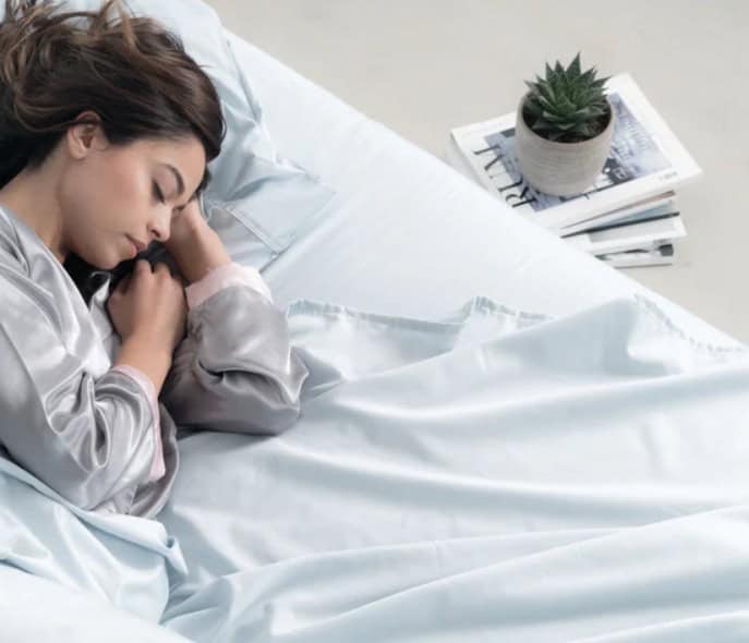 Miracle Made sheets use cotton-based fabric, where the silver is woven directly into the fibers. It’s frequently described as similar to high-end hotel bedding. It feels structured yet breathable; crisp and lightweight throughout the night.
