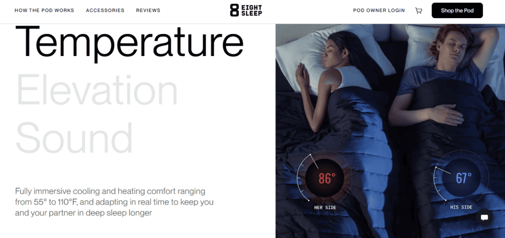 Eight Sleep focuses on using real-time active hydrothermal technology to control and continually adjust the temperature of the mattress on which you are sleeping (through the mattress cover) and the blanket. If you purchase the cooling pillow covers, they do the same thing. These all rely on smart technology to track your temperature preferences and your current body temperature throughout the night.