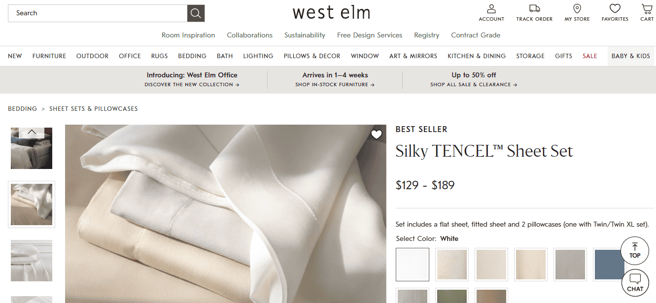 West Elm Silky Tencel Sheet Set