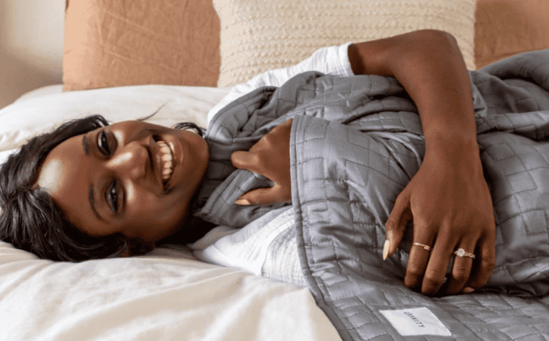This blanket is available in a couple of different weight levels, but it’s filled with small glass beads that allow air to flow through the material, so you can enjoy the feel of a heavy blanket without all your body heat being trapped underneath it with you.